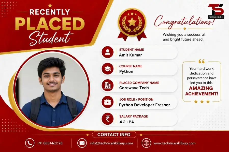 I’m Varun, and I recently completed the Python course at Technical Skills Up. The course was simple, well-structured, and beginner-friendly. Concepts were explained clearly with practical examples, and the hands-on exercises really helped me understand and practice Python effectively. Highly recommended!